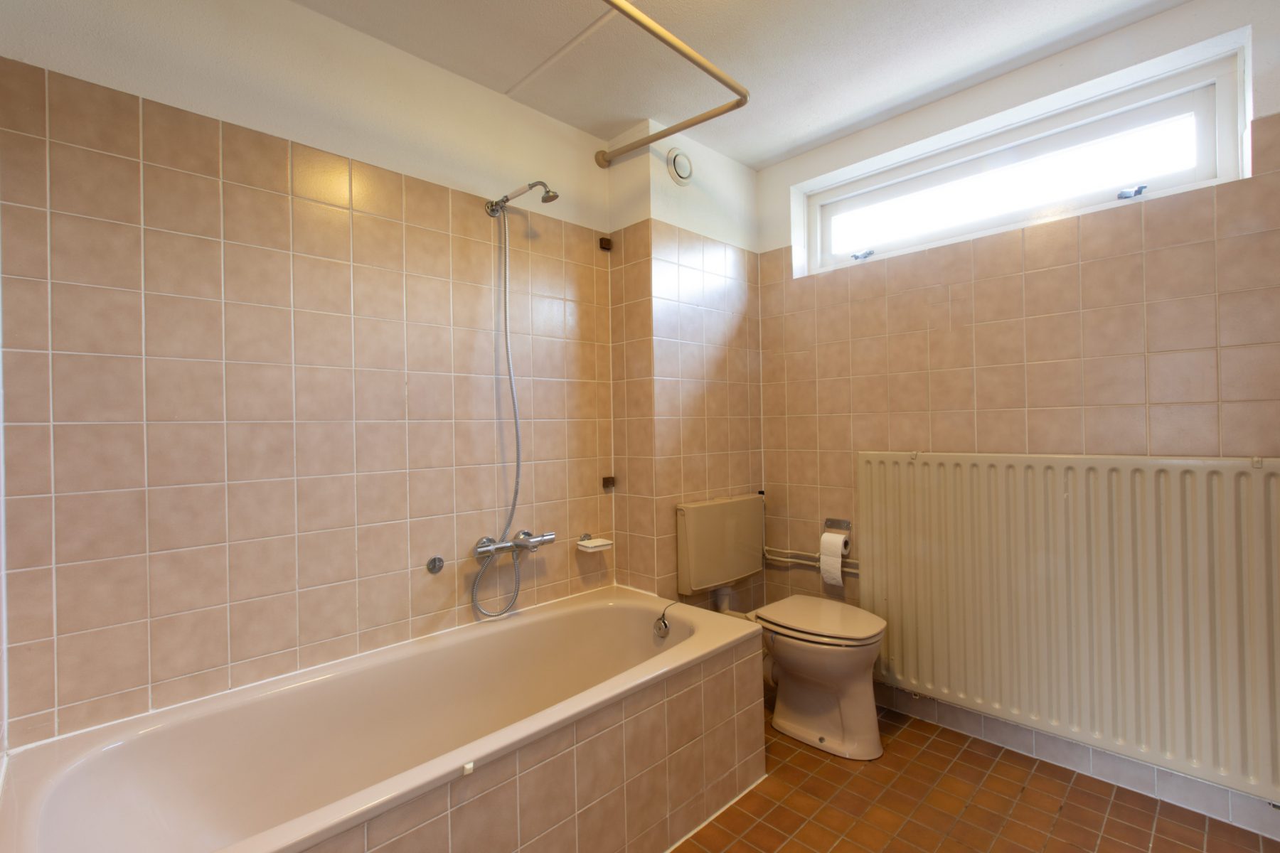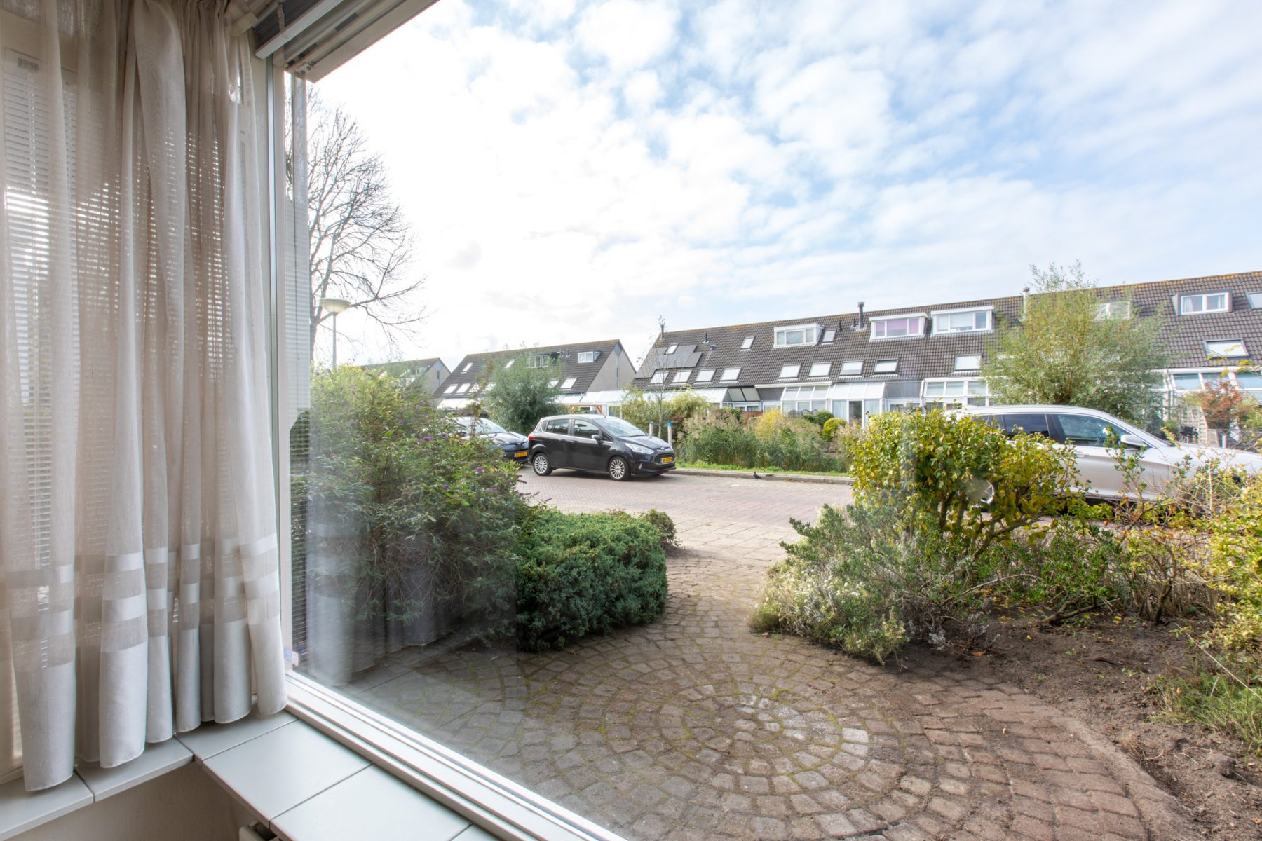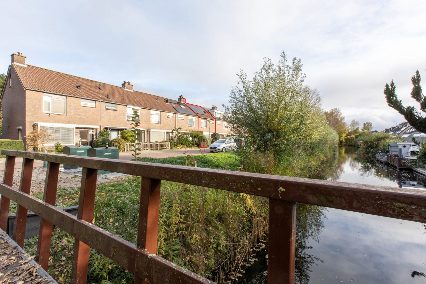 Begane grond: Voortuin naar voordeur, hal met meterkast, toiletruimte, trap en toegang naar de woonkamer met half open keuken. Vanuit de voorkamer met erker kijk je uit over de sloot met schitterende border. Via de achterkamer kan je via een schuifpui en keukendeur naar de riante tuin op het oosten met berging van 7 m2 en achterom. Aan de achtergevel bevindt zich een elektrisch bedienbaar zonnescherm.