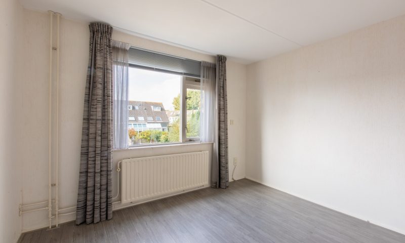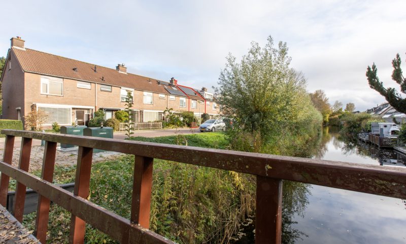 Begane grond: Voortuin naar voordeur, hal met meterkast, toiletruimte, trap en toegang naar de woonkamer met half open keuken. Vanuit de voorkamer met erker kijk je uit over de sloot met schitterende border. Via de achterkamer kan je via een schuifpui en keukendeur naar de riante tuin van 84 m2 op het oosten met berging van 7 m2 en achterom. Aan de achtergevel bevindt zich een elektrisch bedienbaar zonnescherm.