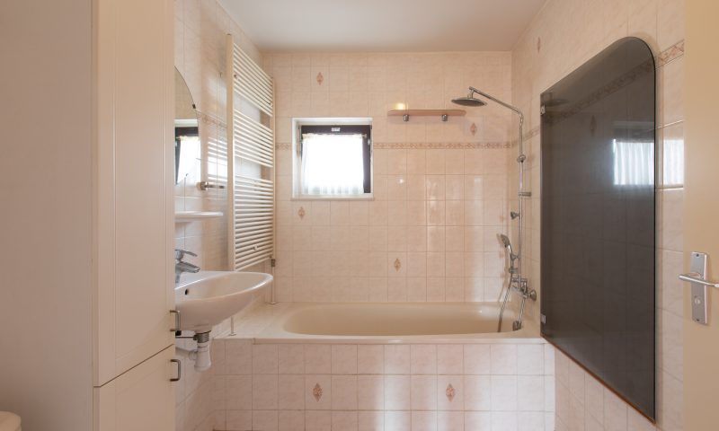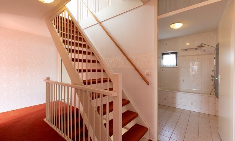 Eerste etage: De eerste etage beschikt over een zeer ruime slaapkamer van maar liefst 20 m2 (indien gewenst kun hier vrij eenvoudig twee slaapkamers van maken door het plaatsen van een scheidingswand). Verder bevindt zich op deze verdieping een kamer van 7,5 m2 die nu dienst doet als wasruimte met opstelplaats voor de wasmachine. Deze ruimte kan echter ook geschikt worden gemaakt als slaapkamer. De op deze etage aanwezige badkamer van 5 m2 beschikt over een ligbad, wastafel en staande toilet. Met de trap gaan we door naar de tweede etage.