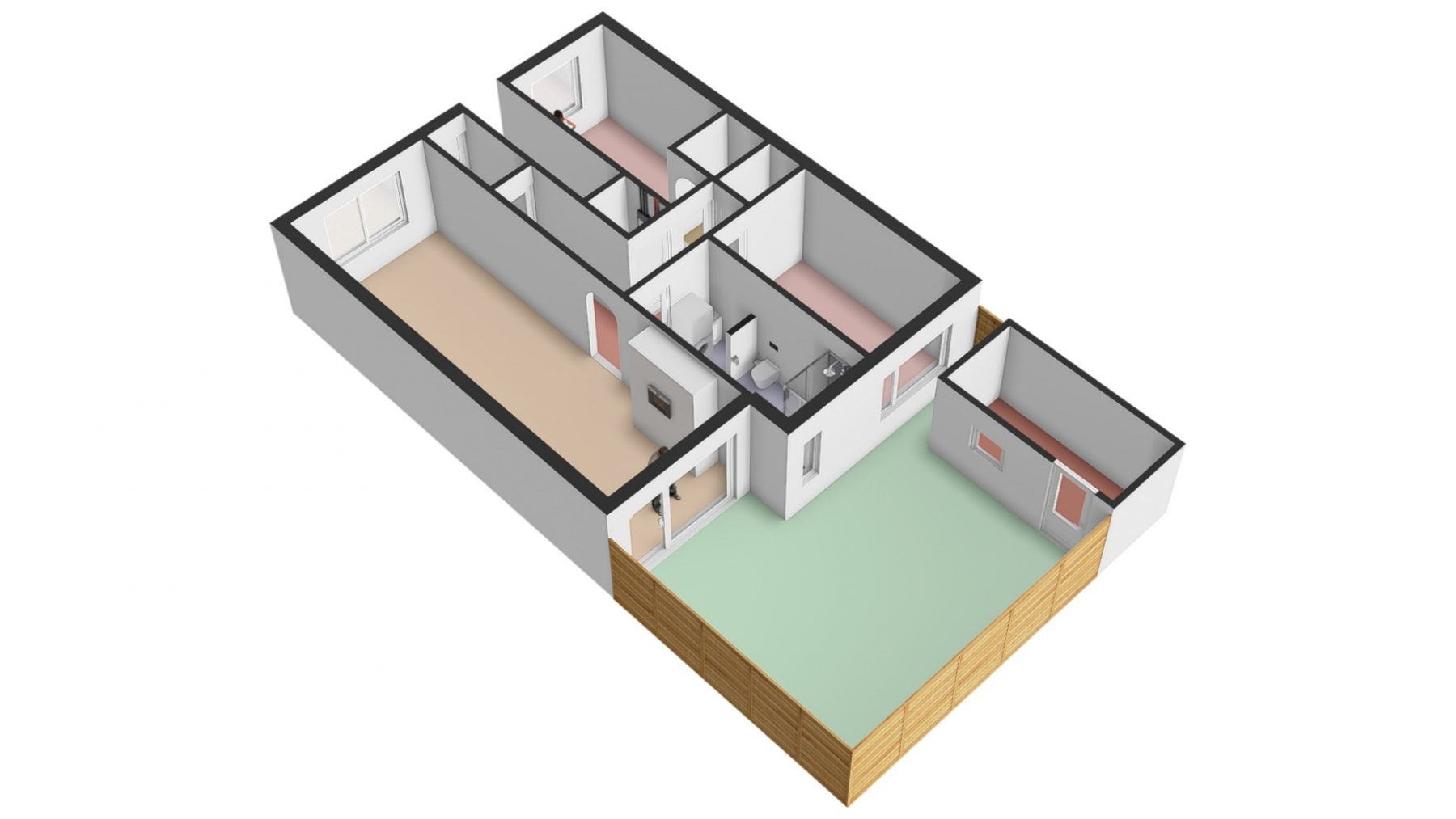 Voor een goede indruk van de maatvoering en de situering van deze ruimtes ten opzichte van elkaar, verwijzen we je graag naar de in deze presentatie getoonde 2D- en 3D-plattegronden.