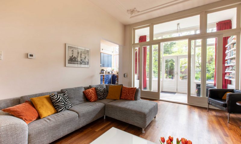 At the stately Huijgenspark, you will find this classic townhouse from 1885 with 250 m2 of living space, 5 bedrooms, and a spacious south-facing backyard. The location is ideal, with the train station, major highways, the historic city center, and shops all nearby.
