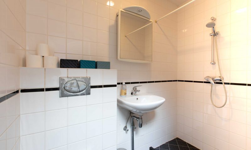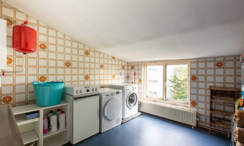 Tweede etage: Via de overloop heeft u toegang tot twee slaapkamers, een badkamer en een wasruimte. De badkamer bevat een toilet en douchehoek. De wasruimte is ruim van opzet en biedt plaats aan de c.v.-ketel en opstelplaats van de wasmachine en droger. Ook is er in deze wasruimte een aanrecht met onderkasten aanwezig.