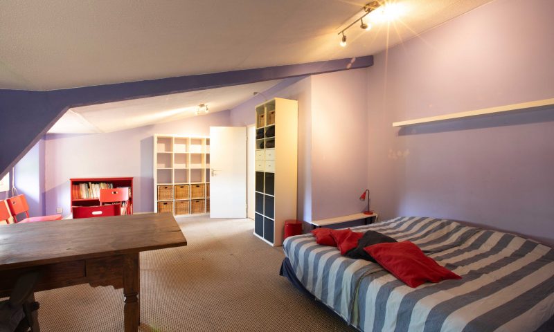 From the landing, you have access to the toilet, bathroom, and three bedrooms. The rear bedroom has a 17 m2 balcony overlooking the backyard and a spacious walk-in closet. The front bedrooms overlook the green Huijgenspark. The bathroom has a bathtub, shower area, and double sink. Via the stairs, you go to the second floor.