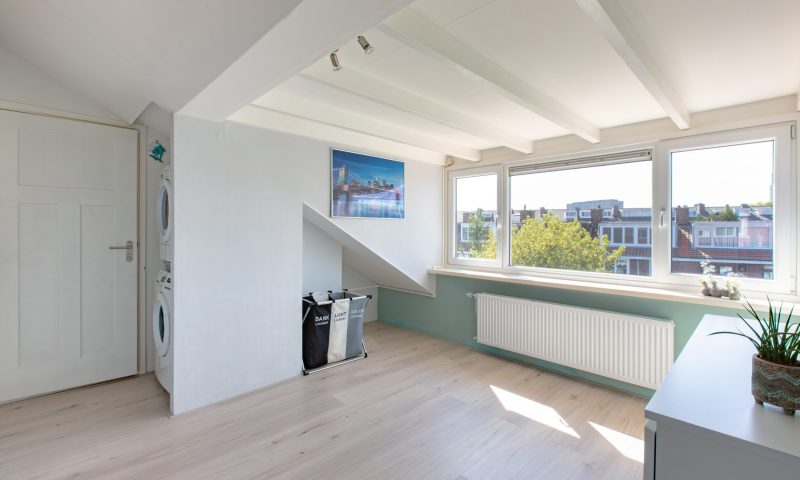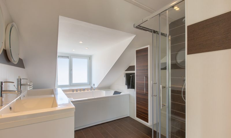 Met de trap gaat u naar de tweede etage met riante overloop en waaruit toegang tot de master bedroom, luxe badkamer en separaat toilet. De badkamer is voorzien van een extra breed jacuzzi ligbad, douchehoek met thermostaatkraan en dubbele wastafel. Op de overloop bevindt zich de opstelplaats voor de wasmachine. Vanuit het toilet is er een doorgang naar extra bergruimte van ca. 2 m2 met de opstelplaats van de c.v.-ketel. De gehele etage biedt veel ruimte dankzij de aanwezige dakkapellen.
