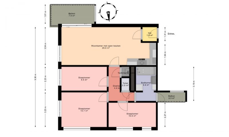 Voor de exacte maatvoering en indeling verwijzen wij je graag naar de 3D-plattegrond in de presentatie.