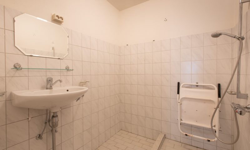 From both the living room and the kitchen, you can access the west-facing balcony (8 m²) that stretches across the full width of the apartment — a wonderful spot to enjoy the afternoon and evening sun. One of the bedrooms also has access to the second, smaller balcony (2 m²). The kitchen includes a lowered countertop suitable for wheelchair users. The bathroom is also equipped with accessibility aids for people with limited mobility.