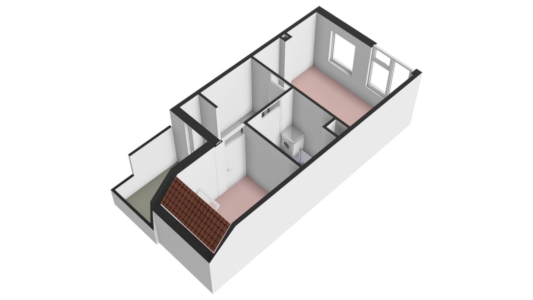 De overloop geeft toegang tot de ruime hoofdslaapkamer, een tweede slaapkamer en een badkamer met douchecabine, wastafel en aansluiting voor de wasmachine. Een kast op de overloop herbergt de cv-combiketel (Bosch, 2013). Vanuit de overloop bereik je ook het zonnige dakterras (5 m²) op het zuiden.