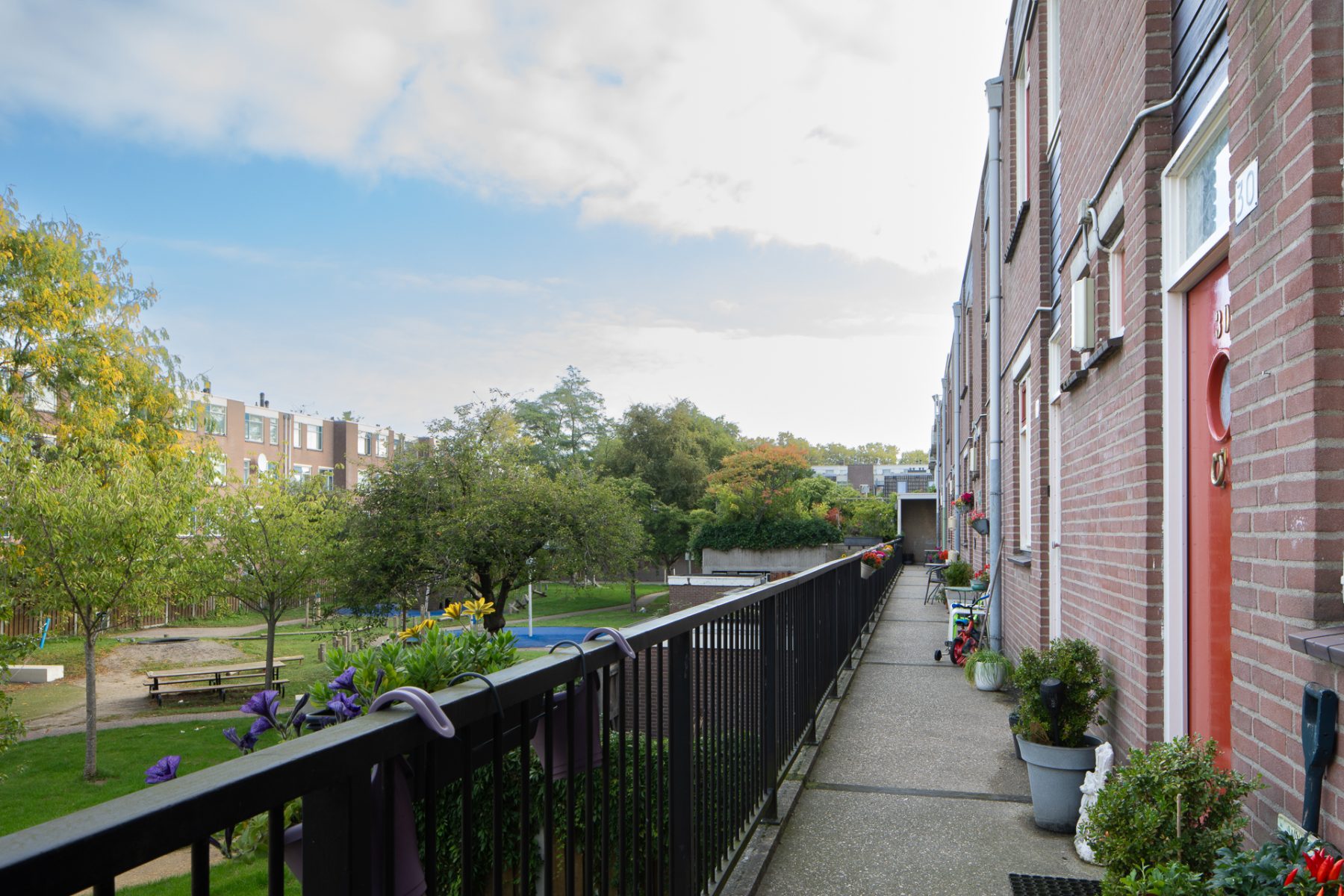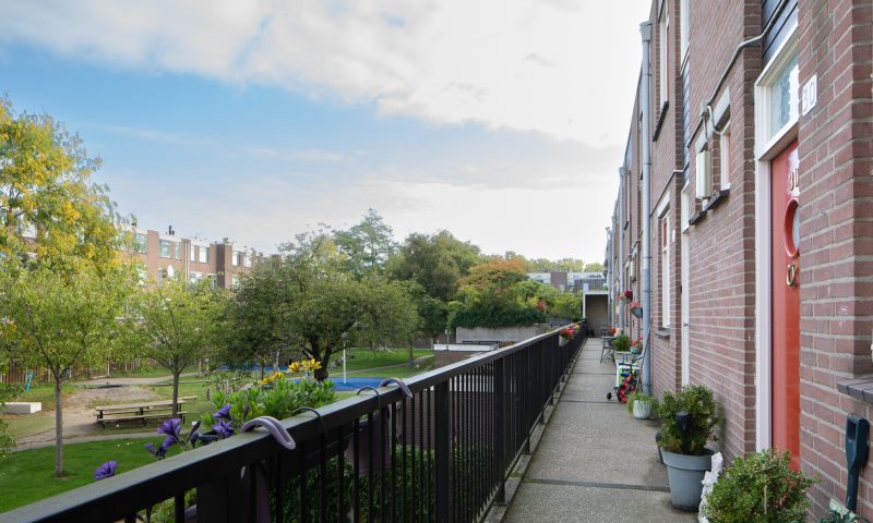 Eerste verdieping: Vanuit de galerij, met uitzicht op een groen park, loop je naar de voordeur. Binnengekomen biedt de hal toegang tot de keuken, woonkamer, toilet, meterkast en trap naar de tweede verdieping. De keuken is voorzien van een gaskookplaat met afzuigkap en een koelkast. Het toilet is uitgerust met een fonteintje.