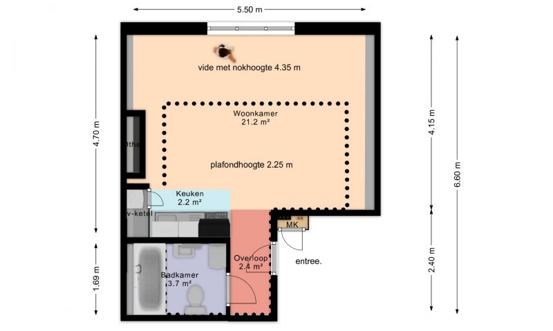 Voor een goede indruk van de maatvoering en de situering van deze ruimtes ten opzichte van elkaar, verwijzen we je graag naar de in deze presentatie getoonde 2D- en 3D-plattegronden.